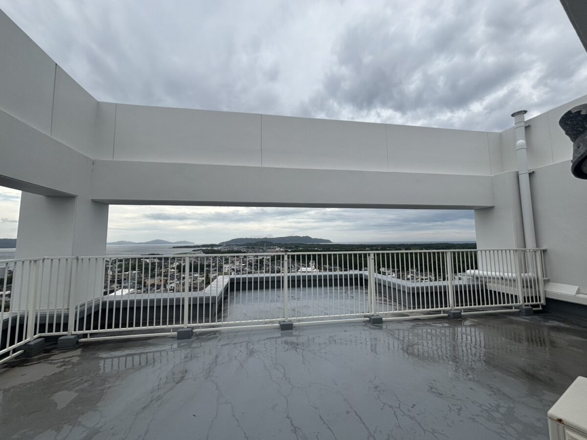 最上階の開放感と海沿いロケーションが魅力の特別な一室です。広いルーフバルコニーでは、眺望を楽しみながらのんびりと過ごせます。室内に一部傷みはございますが、その分ご自身の好みにリフォームして楽しめます。現地案内もすぐご対応可能ですので、お気軽にお問い合わせください。